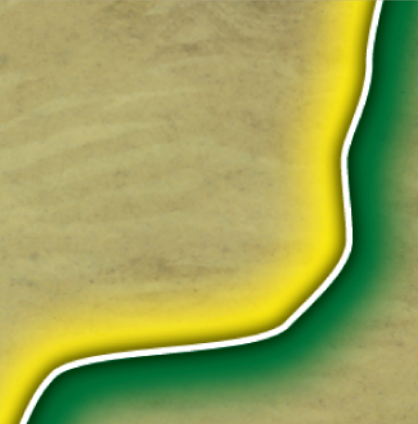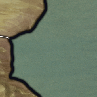Un río entre dos líneas blancas es también un estilo común de frontera entre dos regiones, que actúa como una frontera normal.