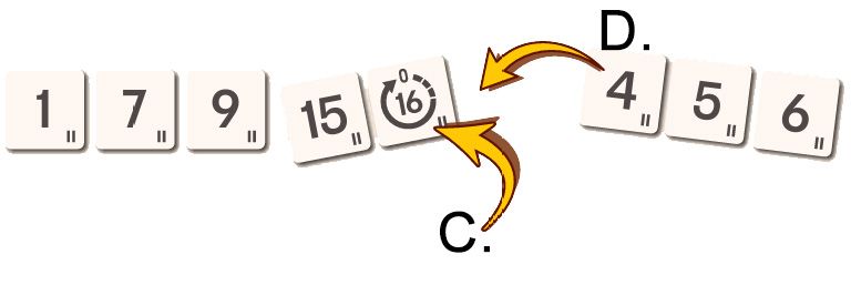 Tuile Redémarrage : Se joue seule ou en dernière tuile d'une suite. Lorsque vous la jouez, c'est un 16, mais une fois placée, elle devient un 0. Quand vous jouez cette tuile, annoncez "Redémarrage !" aux autres joueurs.