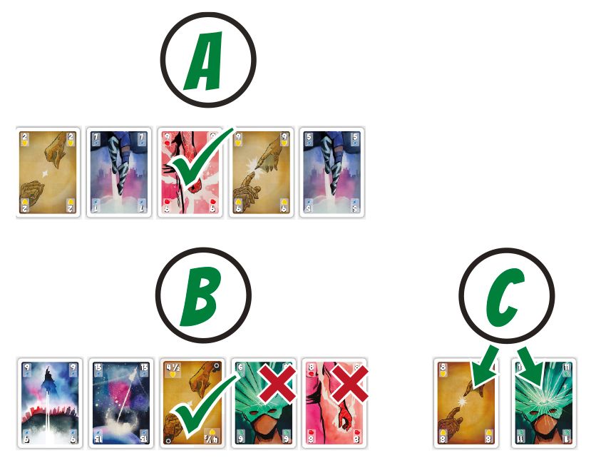 cards in her hand, so both drawn cards are kept, and you discard the 2 rightmost cards,