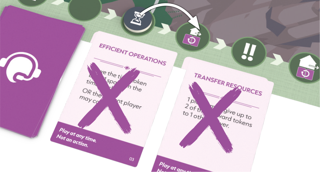 Ticks On rescue card is drawn, advance the time token (moving it 1 space to the right on the time track).