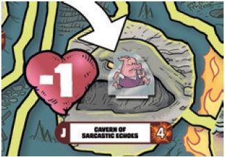 1. Any characters on that Location lose 1 health and are immediately placed in the Cavern of Sarcastic Echoes. NOTE: If Cavern of Sarcastic Echoes is lost, characters lose 1 health when moved there.