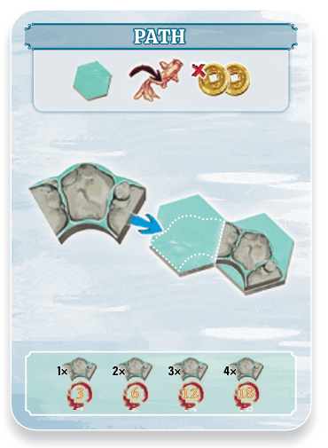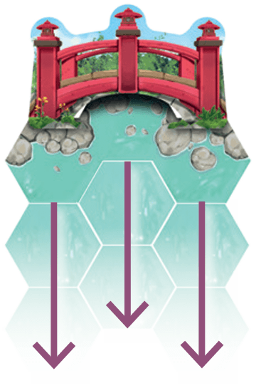 Each path tile must be placed on top of an empty water hex. The first path tile can be placed anywhere in your pond; any following path tiles must continue the path.