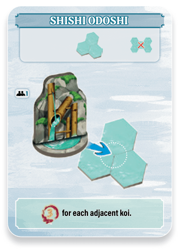 3 VP for each koi adjacent to any of the 3 water tiles that host the Shishi Odoshi.