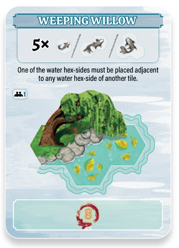 One of the water hex-sides of the weeping willow tile must be placed adjacent to any water hex-side of another tile.