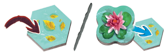 Upgrade 1 foliage tile by adding 1 water-lily. Take 1 water-lily from the supply and place it on the foliage tile.