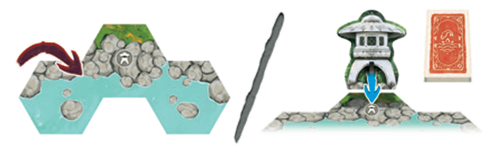 Place 1 koi of any size in your pond, taken from your storage. Depending on its size (small, medium, or large), the koi must overlap 1, 2, or 3 empty water hexes.