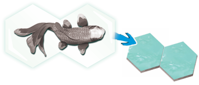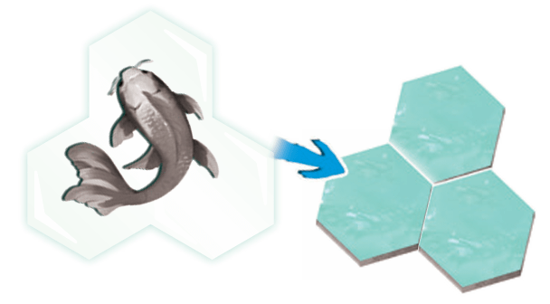 For example, the points granted by a koi vary depending on whether it is surrounded by other tiles that have water hex-sides.