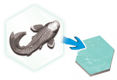 Must be placed adjacent to at least 1 water hex-side of another tile. A water hex is said to be “empty” if it has no other tiles on it. Can hold koi and/or Goals.