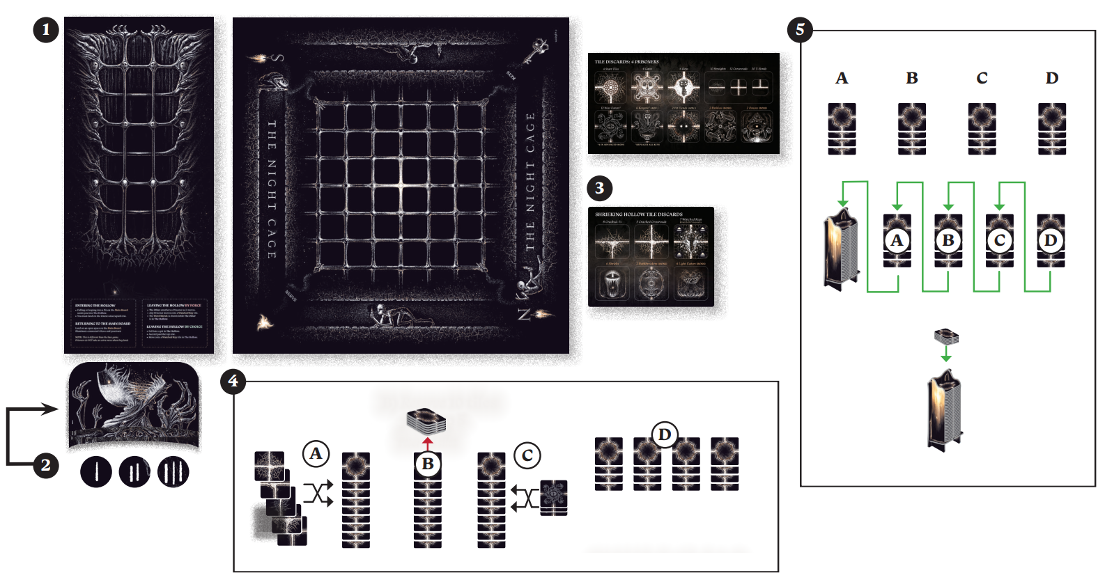 Stack The Other sections in the starting space indicated on the Hollow Board.