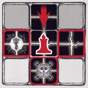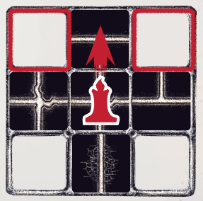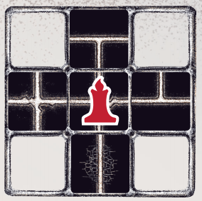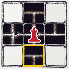 A Prisoner’s candle can only illuminate connected Passages in a one-space radius around your current location (Fig. 1). Diagonal spaces are not Illuminated.