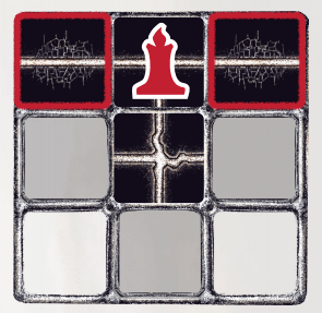 When you Move, the radius of your candlelight moves with you, revealing new Passages. Any tile passing too far outside of your candlelight is lost to Darkness and discarded forever (Fig. 5).