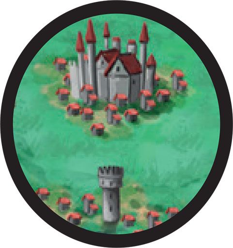 • Once a player’s meeple enters or expands into the ruins, it must be knocked over to indicate it is searching.
