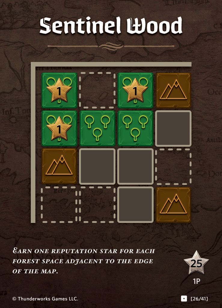 Earn 1 reputation for each Forest space adjacent to the edge of the Map.