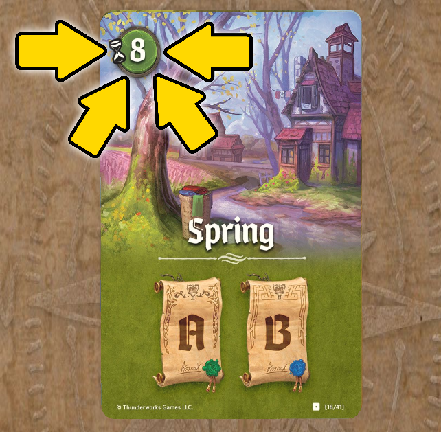 Once the sum of Time Values all reveled Exploration cards in a Season is equal to the Time Threshold of the Season, players progress to the "End of the Season" phase of the game.