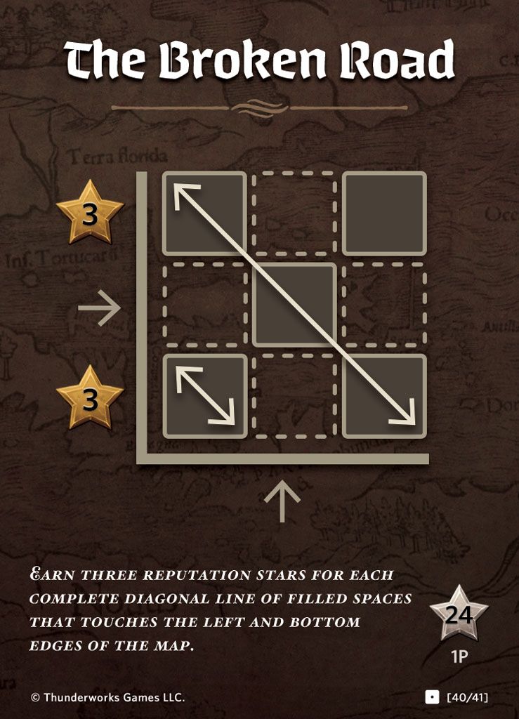 Earn 3 reputation for each complete diagonal line of filled spaces that touches left and bottom edges of the Map.