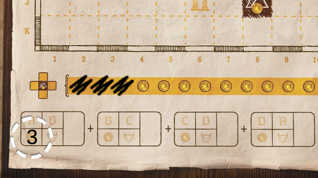 Each player evaluates their own Map to determine, how many reputations they earn for each of the two Scoring cards.