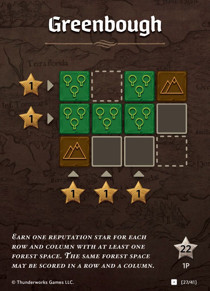 Earn 1 reputation for each row and column with at least one Forest space.