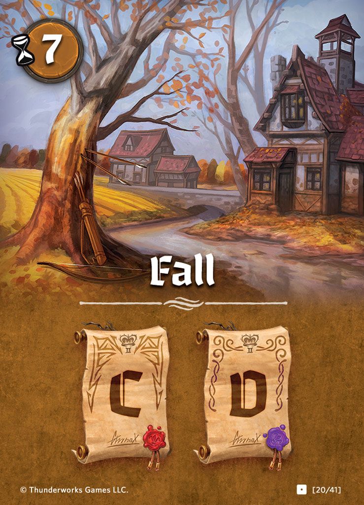 Players also score different Scoring cards at the End of each Season. Which Scoring cards will be scored is shown at the bottom of the Season cards.